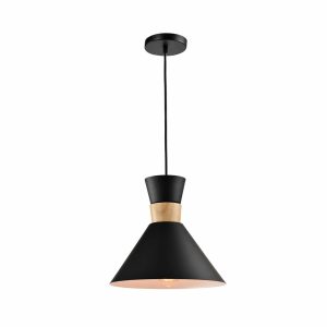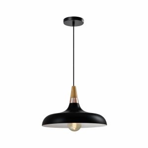 QUVIO Hanglamp Scandinavisch – Rond van metaal en hout – Diameter 30 cm – Zwart en bruin