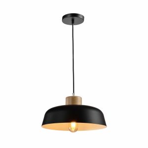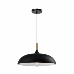 QUVIO Hanglamp Scandinavisch – Simplistisch laag design – Houten kop – D 30 cm – Zwart