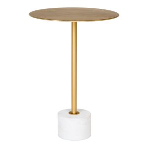QUVIO Bijzettafel Lecco – Marmer en Messing – Ø51×52 cm