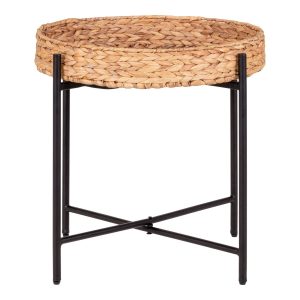 QUVIO Bijzettafel – Naturel – Zwart – Metaal – Waterhyacint