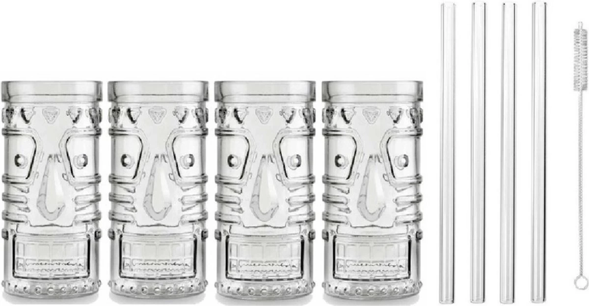 Een set met 4x cocktail glazen / Mai Tai glazen, inclusief 4x glazen herbruikbare drinkrietjes.