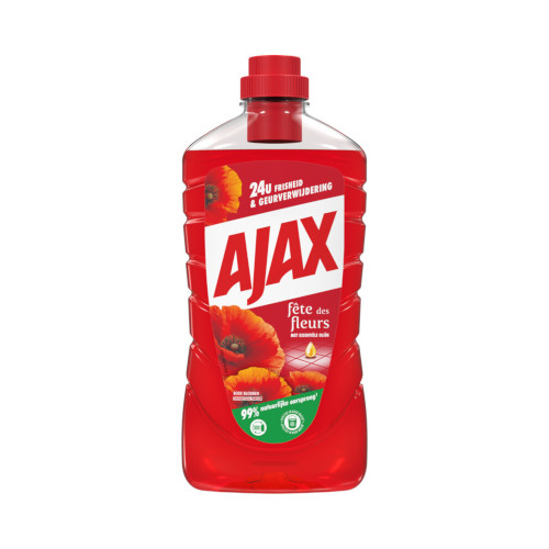 Maak je huis of kantoor stralend fris en glanzend met Ajax fête des fleurs klaprozenveld allesreiniger.