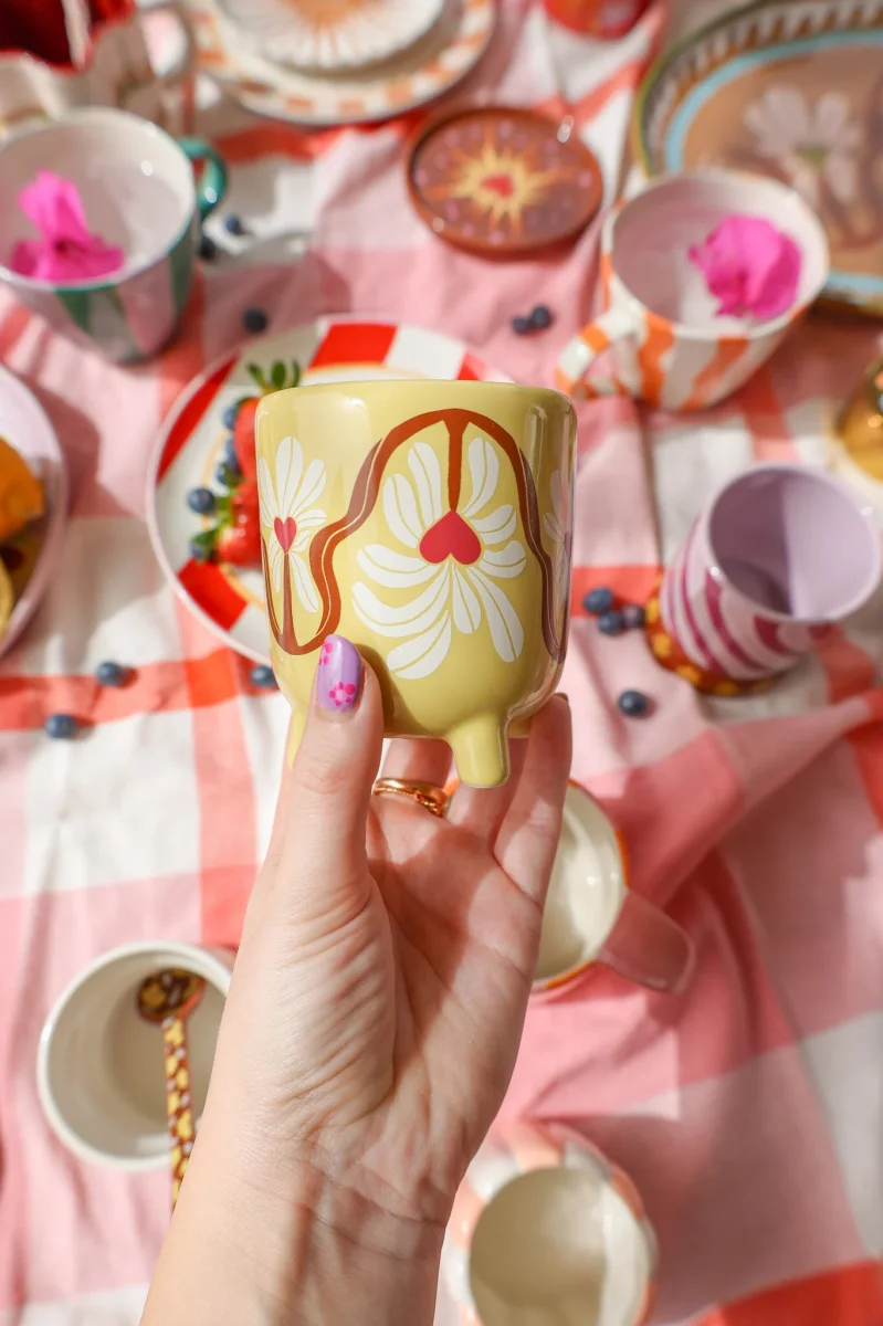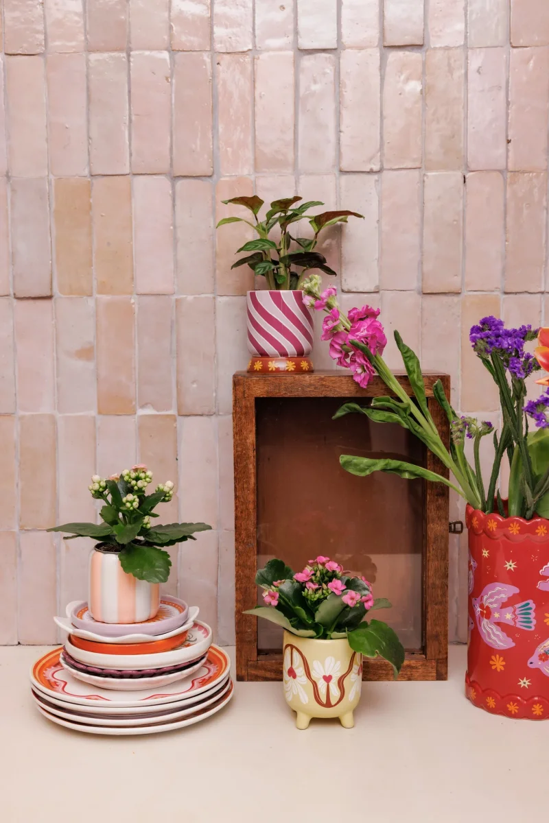 Dit bloemenpotje is een vrolijke toevoeging aan je interieur! Dit item is multifunctioneel, want je kan er ook een heerlijk koffietje uit drinken.