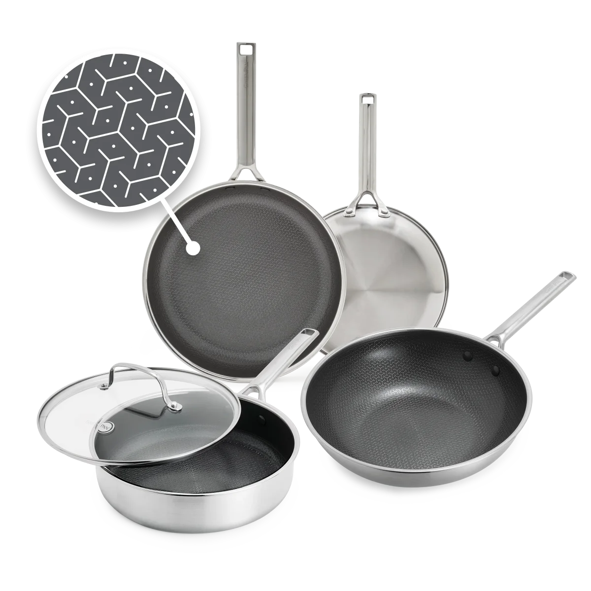 Deze ultrasterke collectie combineert de kracht van 3-laags roestvrij staal met het comfort van antiaanbak. Ontdek Thermolon™ 9G, GreenPan’s meest geavanceerde PFAS-VRIJE keramische antiaanbaklaag, versterkt met diamant en afgewerkt met een geëetst roestvrij stalen patroon met extra boostlaag, voor een pannenreeks die 5x meer bestand is tegen krassen.