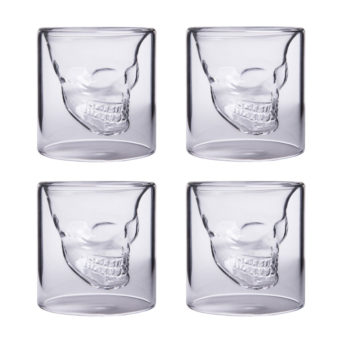 De schedel is gevormd aan de binnenkant van het glas wat een mooi 3D effect geeft. De skull komt voornamelijk tot zijn recht wanneer deze met een donkere drank wordt gevuld. Met een shotglaasje zet je in ieder geval iets aparts op tafel. Hoewel de schedel klein lijkt, heeft elk shotglaasje een inhoud van 25 ml.