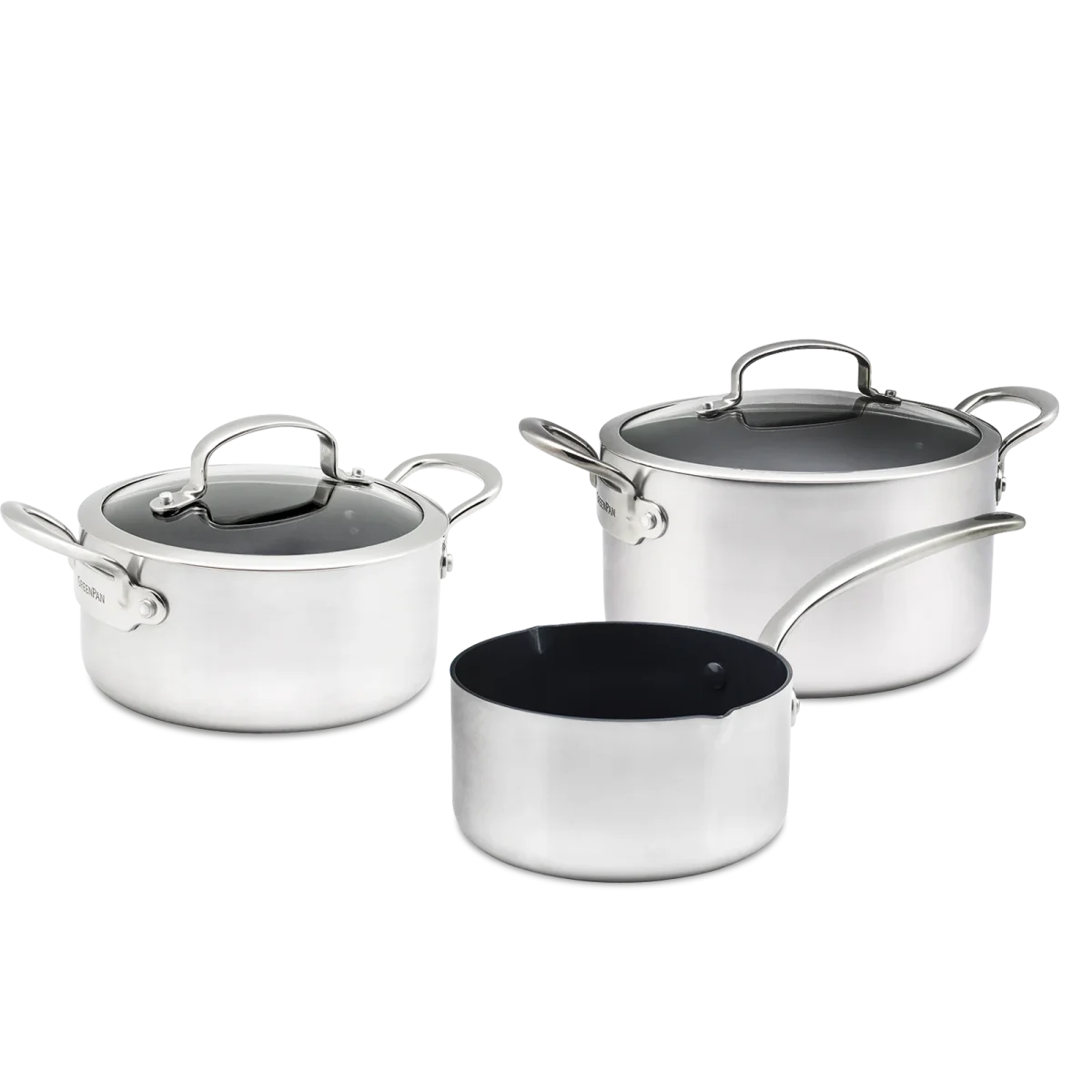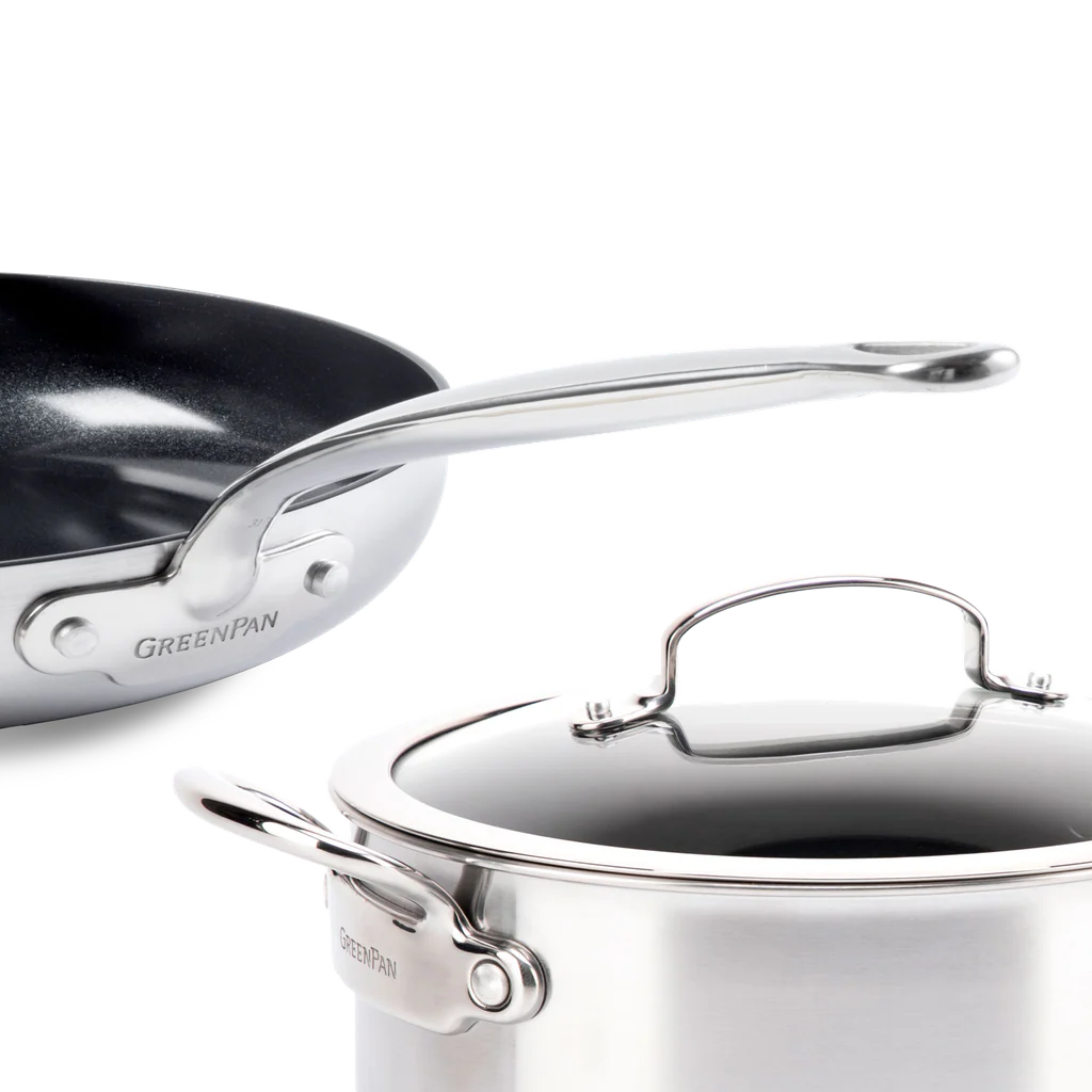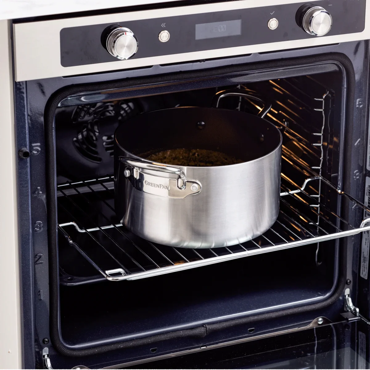 De luxueuze Barcelona Evershine collectie is knap om te zien en een plezier om mee te koken! Het ontwerp in 3-laags roestvrij staal met aluminium kern warmt snel en gelijkmatig op voor professionele resultaten. De Thermolon Infinity Pro keramische antikleeflaag is versterkt met diamant en bevat geen schadelijke stoffen (PFAS-vrij).