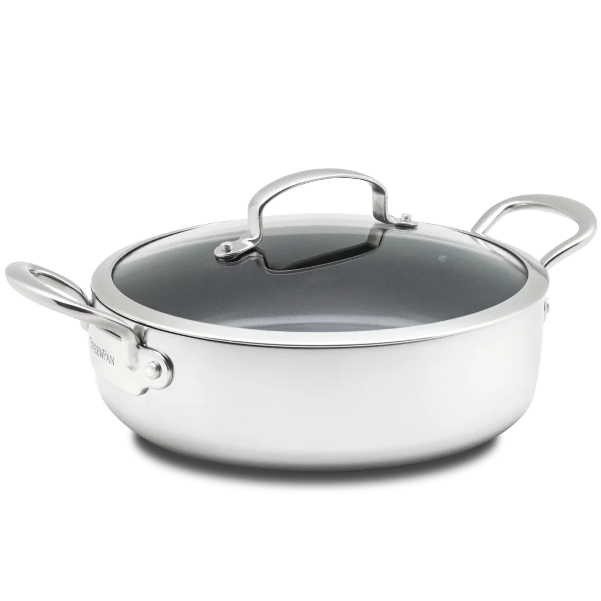De luxueuze Barcelona Evershine collectie is knap om te zien en een plezier om mee te koken! Het ontwerp in 3-laags roestvrij staal met aluminium kern warmt snel en gelijkmatig op voor professionele resultaten. De Thermolon Infinity Pro keramische antiaanbaklaag is versterkt met diamant en bevat geen schadelijke stoffen (PFAS-vrij).
