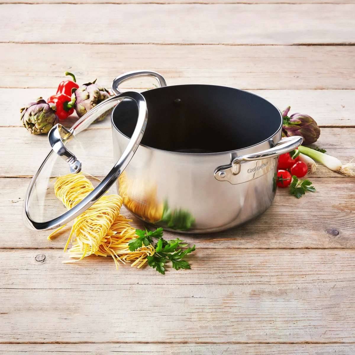 De luxueuze Barcelona Evershine collectie is knap om te zien en een plezier om mee te koken! Het ontwerp in 3-laags roestvrij staal met aluminium kern warmt snel en gelijkmatig op voor professionele resultaten. De Thermolon Infinity Pro keramische antiaanbaklaag is versterkt met diamant en bevat geen schadelijke stoffen (PFAS-vrij).