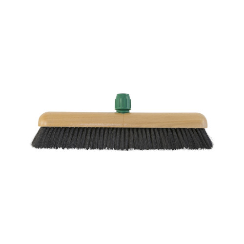 Deze indoor zaalveger heeft een breedte van 30 cm en een dubbelvaste steelaansluiting. In de houten bezem kun je een houten steel plaatsen of een (telescoop)steel met Duits schroefdraad.