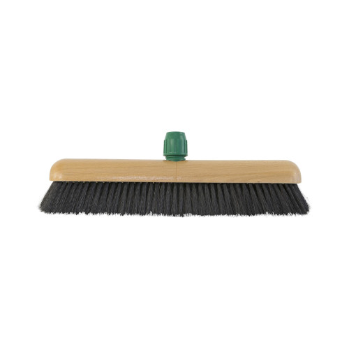 Deze indoor zaalveger heeft een breedte van 40 cm en een dubbelvaste steelaansluiting. In de houten bezem kun je een houten steel plaatsen of een (telescoop)steel met Duits schroefdraad.