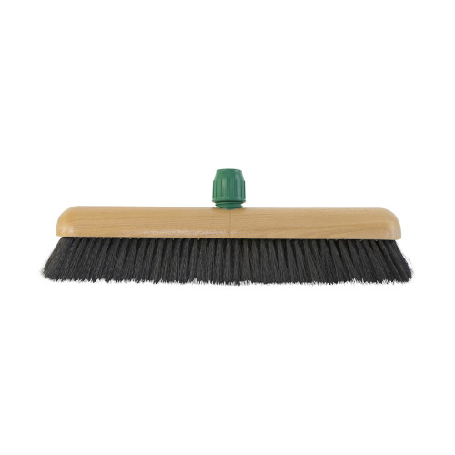 Deze indoor zaalveger heeft een breedte van 60 cm en een dubbelvaste steelaansluiting. In de houten bezem kun je een houten steel plaatsen of een (telescoop)steel met Duits schroefdraad.