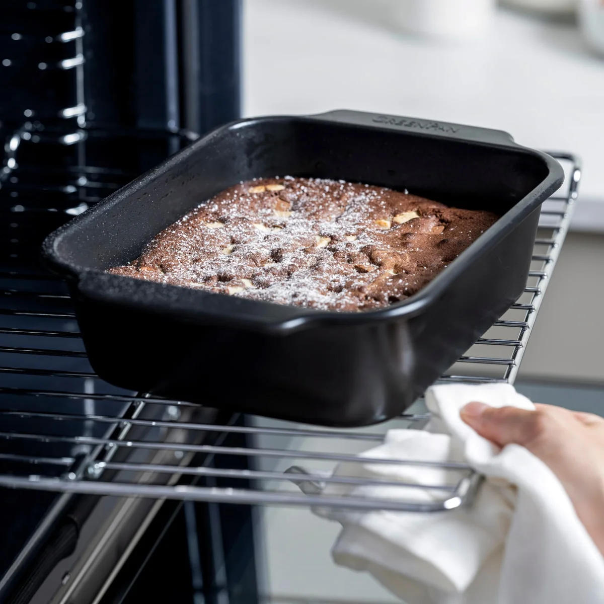 Met z’n nieuwe collectie bakvormen brengt GreenPan zijn expertise in PFAS-vrije antiaanbaklagen van het fornuis naar de oven! De collectie is gemaakt van stevig gealuminiseerd staal, waardoor ze oersterk is. Ze is kras- en corrosiebestendig, en trekt niet krom. De PFAS-vrije antiaanbaklaag zorgt ervoor dat voedsel makkelijk loskomt, zodat je je heerlijke creaties niet beschadigt als je ze uit de bakvorm haalt. De bakvormen schoonmaken, is kinderspel. Alle bakvormen – behalve de springvorm en muffinvorm – zijn bovendien vaatwasserbestendig. Extra makkelijk!