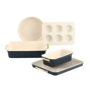 Met z’n nieuwe collectie bakvormen brengt GreenPan zijn expertise in PFAS-vrije antiaanbaklagen van het fornuis naar de oven! De collectie is gemaakt van stevig gealuminiseerd staal, waardoor ze oersterk is. Ze is kras- en corrosiebestendig, en trekt niet krom. De PFAS-vrije antiaanbaklaag zorgt ervoor dat voedsel makkelijk loskomt, zodat je je heerlijke creaties niet beschadigt als je ze uit de bakvorm haalt. De bakvormen schoonmaken, is kinderspel. Alle bakvormen – behalve de springvorm en muffinvorm – zijn bovendien vaatwasserbestendig. Extra makkelijk!