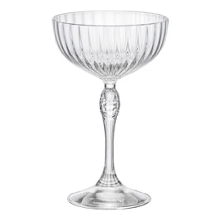 Back to the 20’s met de Bormioli Rocco Cocktailglazen uit de America 20’s collectie. Deze unieke collectie glazen is geïnspireerd op de Amerikaanse jazzbars uit de jaren 20. Typerend voor de cocktailglazen uit deze collectie is het vintage design met de geslepen randen. Deze set Bormioli Rocco Cocktailglazen set van 6 stuks met een inhoud van 220 ml (tot de rand gevuld). Deze glazen zijn gemaakt in Italie en zijn geschikt om verschillende cocktails of champagne in te serveren.
