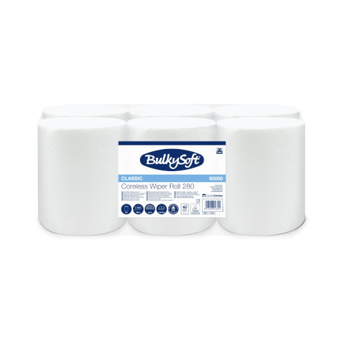 De BulkySoft poetsrollen uit de Classic-lijn zonder koker bieden een praktische en efficiënte oplossing voor al je schoonmaakbehoeften.