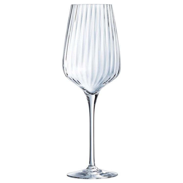 De verticale lijnen die door de glazen lopen, creëren een subtiel optisch spel dat niet alleen stijlvol oogt, maar ook je wijnpresentatie naar een hoger niveau tilt. Of je nu geniet van een goed glas rood, wit, of een bruisende champagne, de Symétrie collectie voegt altijd een vleugje luxe toe.