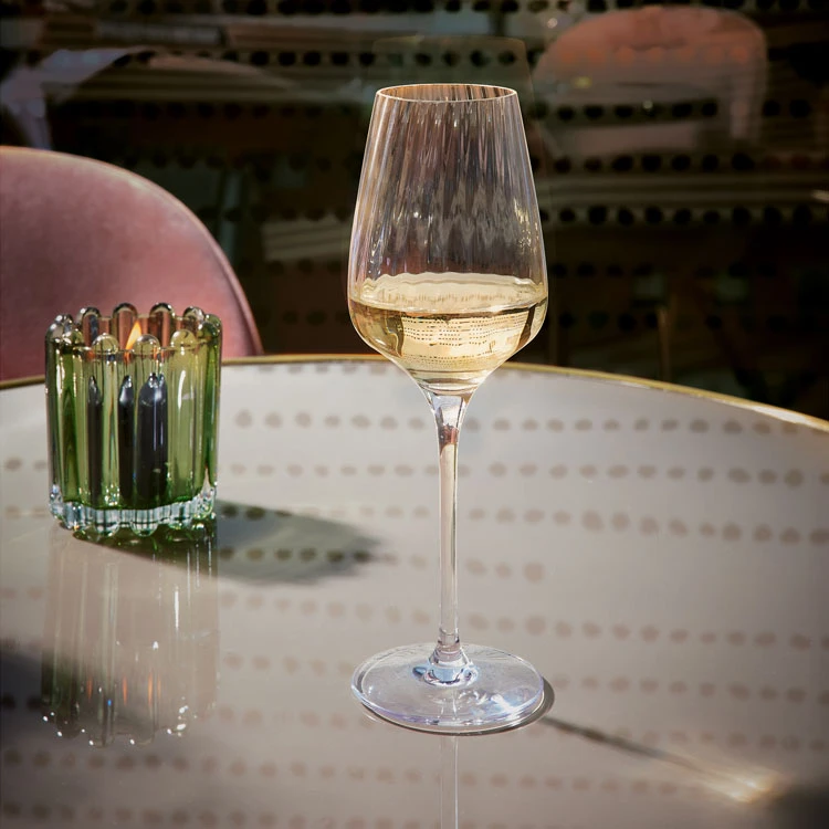 Waan je in een sterrenrestaurant met deze unieke witte wijnglazen uit de Symetrie serie van het Franse merk: Chef & Sommelier. Deze geribbelde wijnglazen zijn gemaakt van kristalglas met een ribbelmotief in verticale lijnen op de kelk. Dit subtiele geribbelde glas geeft deze wijnglazen een unieke en luxueuze uitstraling.