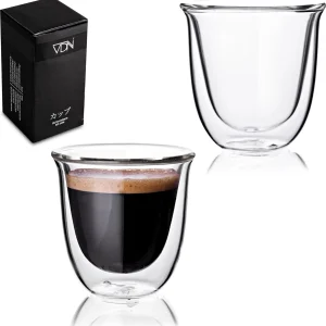 Geniet van heerlijke warme en koude dranken. Dankzij deze dubbelwandige bekers met isolerende werking blijven uw dranken langer op temperatuur. De bekers zijn gemakkelijk vast te houden. Ze hebben een eenvoudig design en tegelijk een opvallend karakter. Ook voor borrelhapjes en desserts kunt u de bekers perfect gebruiken. De bekers zijn gemaakt uit borosilicaatglas en zijn bovendien vaatwasmachine- en microgolfovenbestendig.