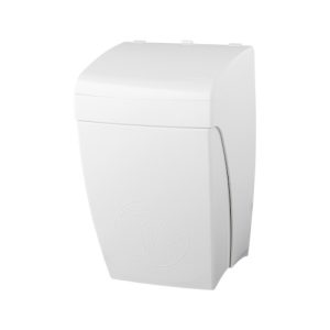 De afvalbak heeft een rechthoekig design en een verhoogde deksel. Doordat de deksel aan de bovenzijde iets verhoogd is, benut de capaciteit optimaal.