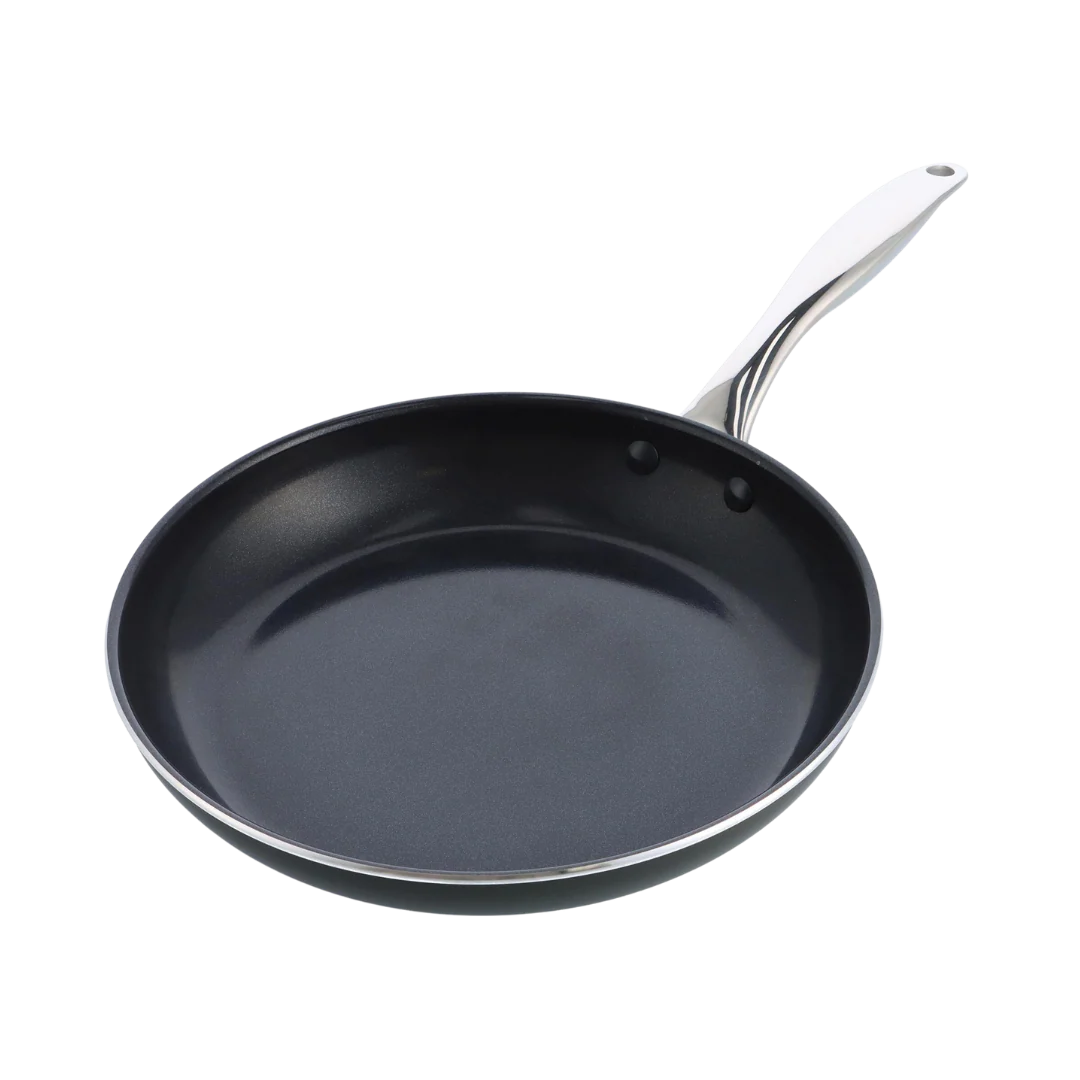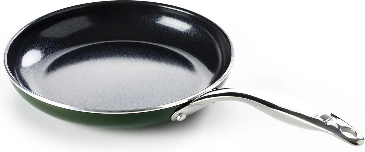 De aluminium pannen van Dagelijkse Kost hebben een keramische antiaanbaklaag die gemaakt is op basis van zand en nooit schadelijke stoffen of dampen zal vrijgeven, al raakt je pan per ongeluk oververhit. De coating geleidt de warmte snel en gelijkmatig, is zonder moeite schoon te maken en mag ook in de vaatwas, en zorgt voor een perfect korstje op je vlees of vis. De pannen hebben een ovenvaste greep in roestvrijstaal, kunnen op alle vuren inclusief inductie en zijn ovenvast tot 220°C. Echte allrounders dus, precies het soort pannen waarmee Jeroen Meus graag kookt. En het oog wil ook wat: deze collectie heeft een donker olijfgroene kleur en staat prachtig in elke keuken.