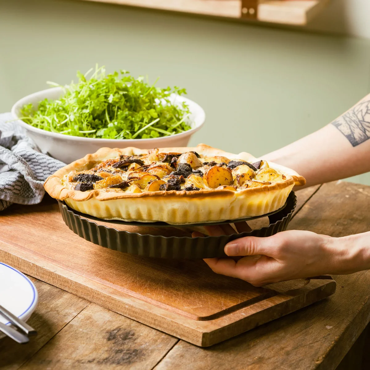 Met de bakvormen van Dagelijkse kost wordt bakken nóg plezanter! Ze zijn gemaakt van kwalitatief gealuminiseerd plaatstaal. Daardoor zijn ze extra stevig en warmen ze gelijkmatig op. Zo ben je zeker van perfecte bakresultaten. Dankzij de PFAS-vrije antikleeflaag aan de binnenkant blijft je baksel niet plakken en behoudt het zijn vorm. Nog een voordeel: schoonmaken is kinderspel! En ook het stijlvolle olijfgroene design mag er zijn. Mooi, duurzaam en makkelijk!