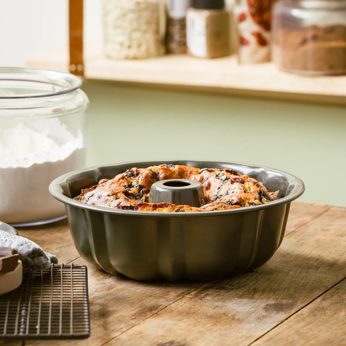 Met de bakvormen van Dagelijkse kost wordt bakken nóg plezanter! Ze zijn gemaakt van kwalitatief gealuminiseerd plaatstaal. Daardoor zijn ze extra stevig en warmen ze gelijkmatig op. Zo ben je zeker van perfecte bakresultaten. Dankzij de PFAS-vrije antikleeflaag aan de binnenkant blijft je baksel niet plakken en behoudt het zijn vorm. Nog een voordeel: schoonmaken is kinderspel! En ook het stijlvolle olijfgroene design mag er zijn. Mooi, duurzaam en makkelijk!