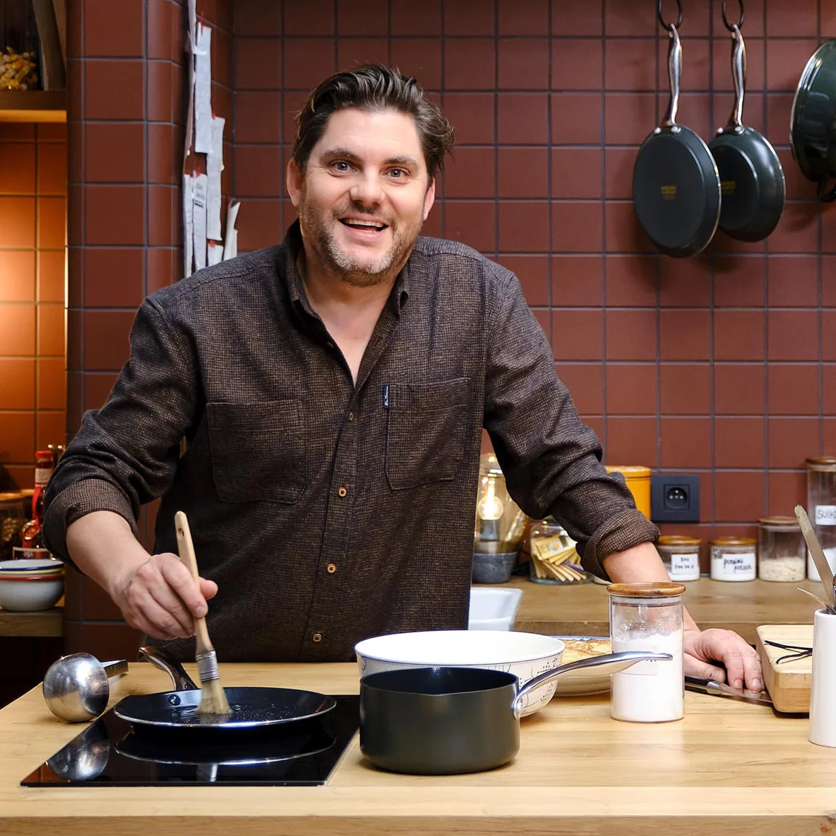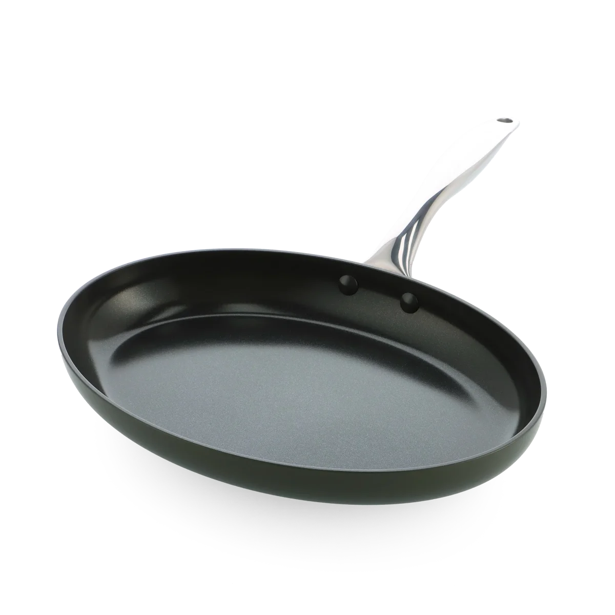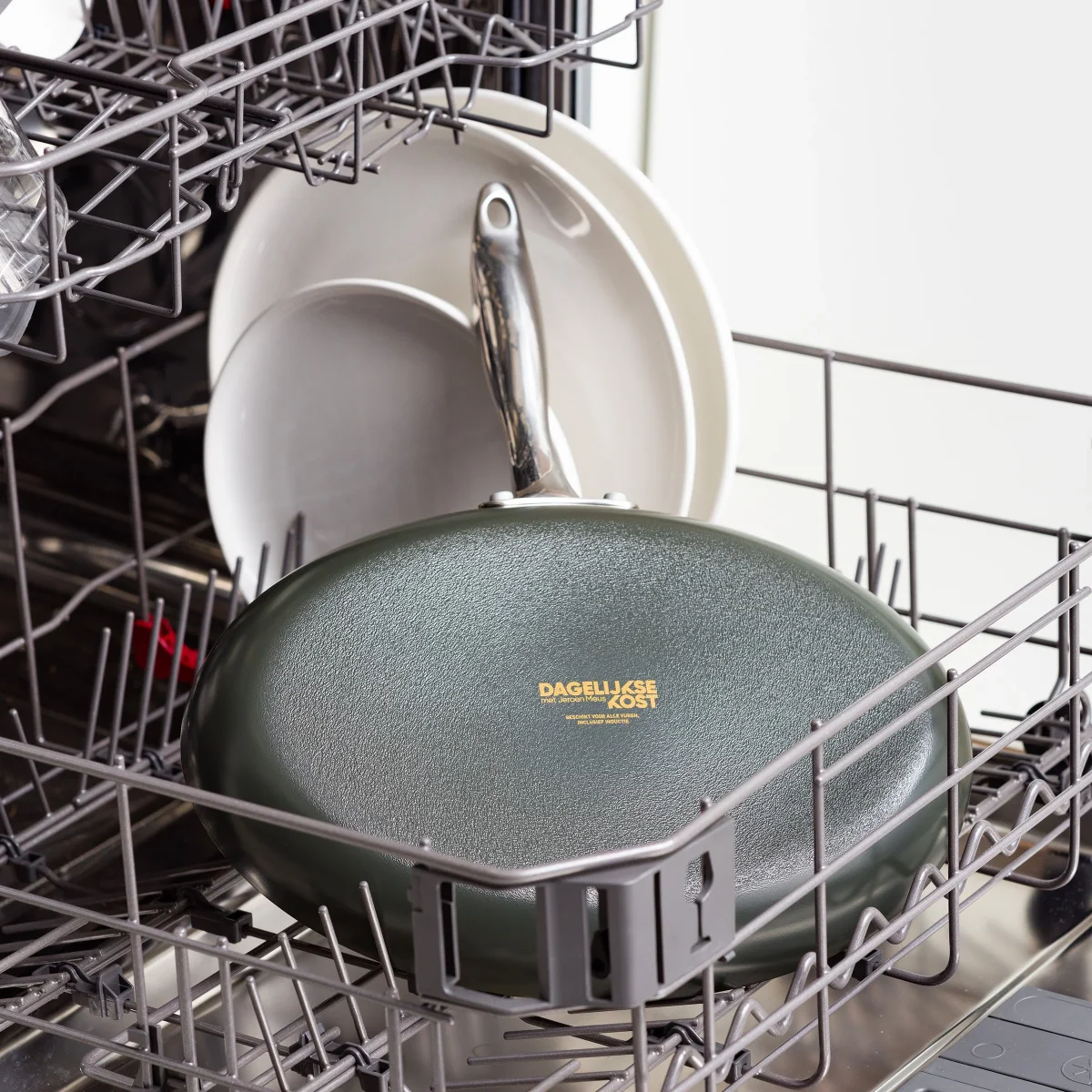 De aluminium pannen van Dagelijkse Kost hebben een keramische antiaanbaklaag die gemaakt is op basis van zand en nooit schadelijke stoffen of dampen zal vrijgeven, al raakt je pan per ongeluk oververhit. De coating geleidt de warmte snel en gelijkmatig, is zonder moeite schoon te maken en mag ook in de vaatwas, en zorgt voor een perfect korstje op je vlees of vis. De pannen hebben een ovenvaste greep in roestvrijstaal, kunnen op alle vuren inclusief inductie en zijn ovenvast tot 220°C. Echte allrounders dus, precies het soort pannen waarmee Jeroen Meus graag kookt. En het oog wil ook wat: deze collectie heeft een donker olijfgroene kleur en staat prachtig in elke keuken.