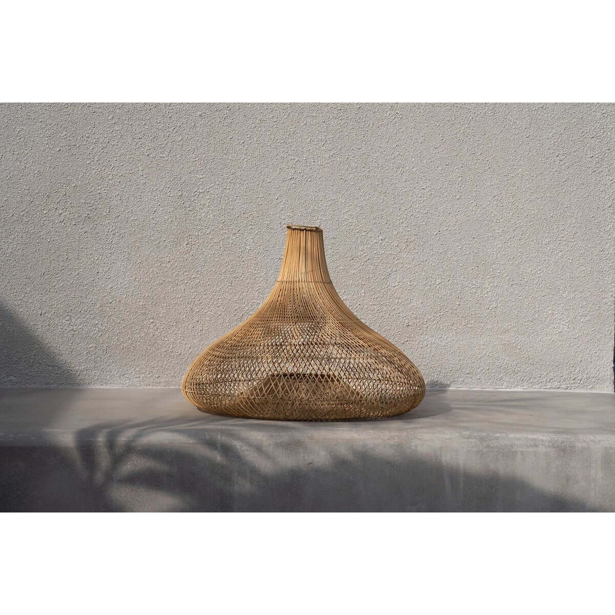 De Shala is een hanglamp – of vloerlamp, afhankelijk van hoe je hem wilt gebruiken – die indruk wil maken. De belvorm is volledig gemaakt van rotan en heeft de organische uitstraling die ieder interieur nodig heeft. Het is verkrijgbaar in twee maten.