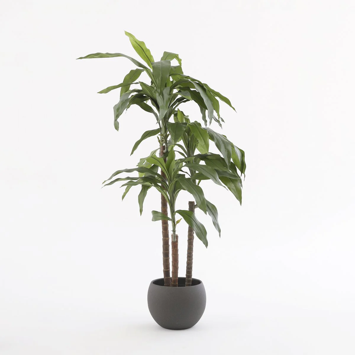 Klaar om zorgeloos te genieten? De kunstplanten van Mica Decorations zijn niet van echt te onderscheiden, maar hebben geen enkel onderhoud nodig. Deze Dracaena heeft grote, langwerpige bladeren in verschillende groeistadia voor een natuurlijk effect. Ook de stammen zijn tot in detail nagemaakt. De plant is stevig verankerd in een zwarte kunststof pot, maar moet voor gebruik wel nog in model worden gebracht. Zet hem na het uitvouwen zo neer, of gebruik de kunststof pot als stevige basis voor een sierlijke overpot. Combineer hem met andere kunstplanten en -bloemen uit de collectie en breng meer groen in huis. De Dracaena is 100 cm hoog en heeft een diameter van 70 cm.