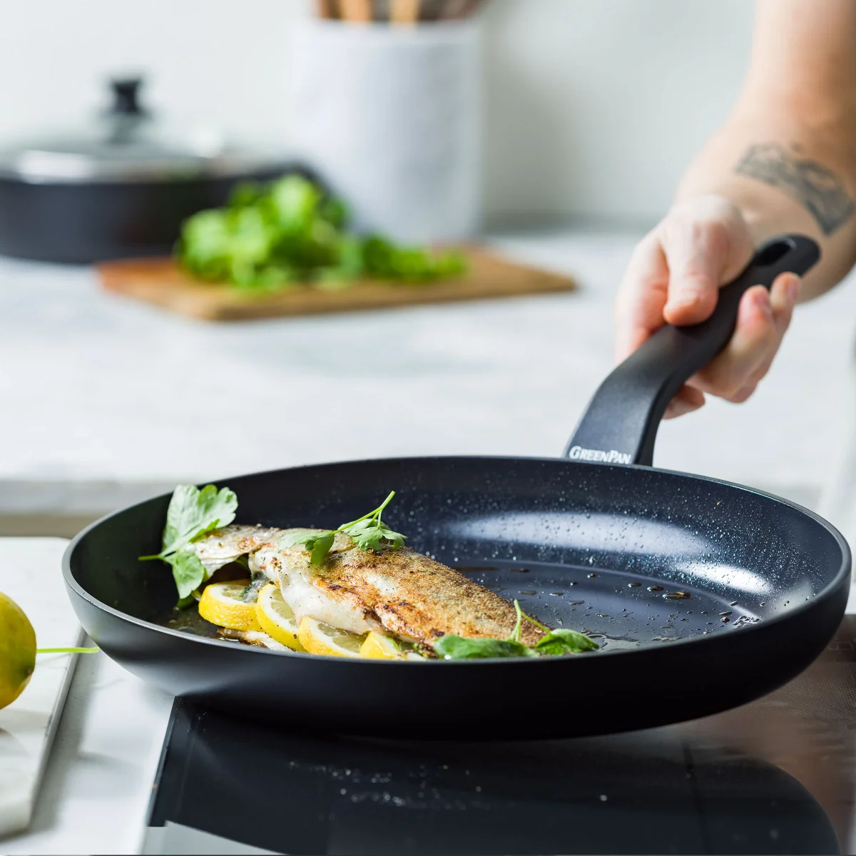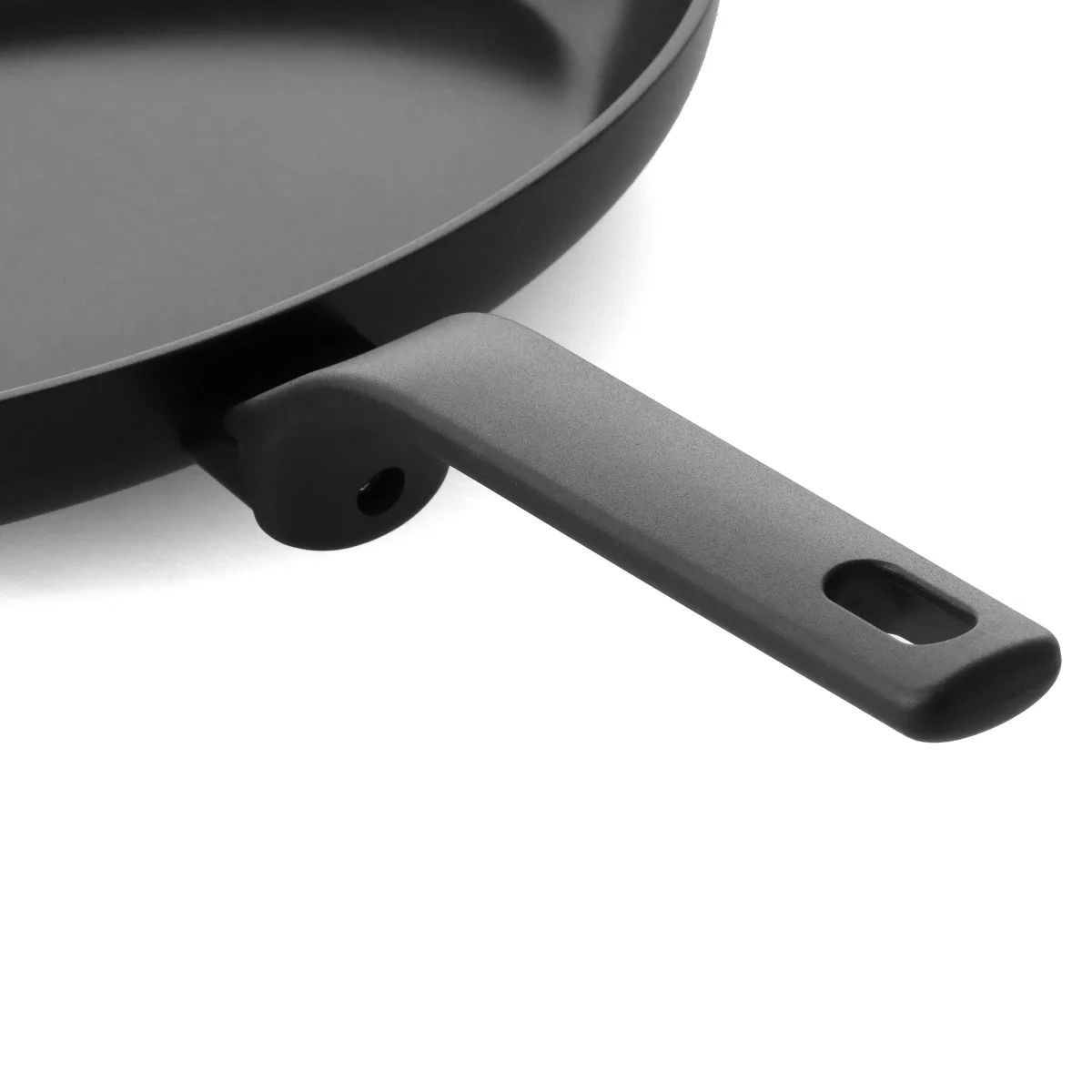 De elegante stay-cool handgreep zorgt voor een veilige grip en is na gebruik eenvoudig los te schroeven. Daardoor kan deze pan makkelijker gerecycleerd worden.