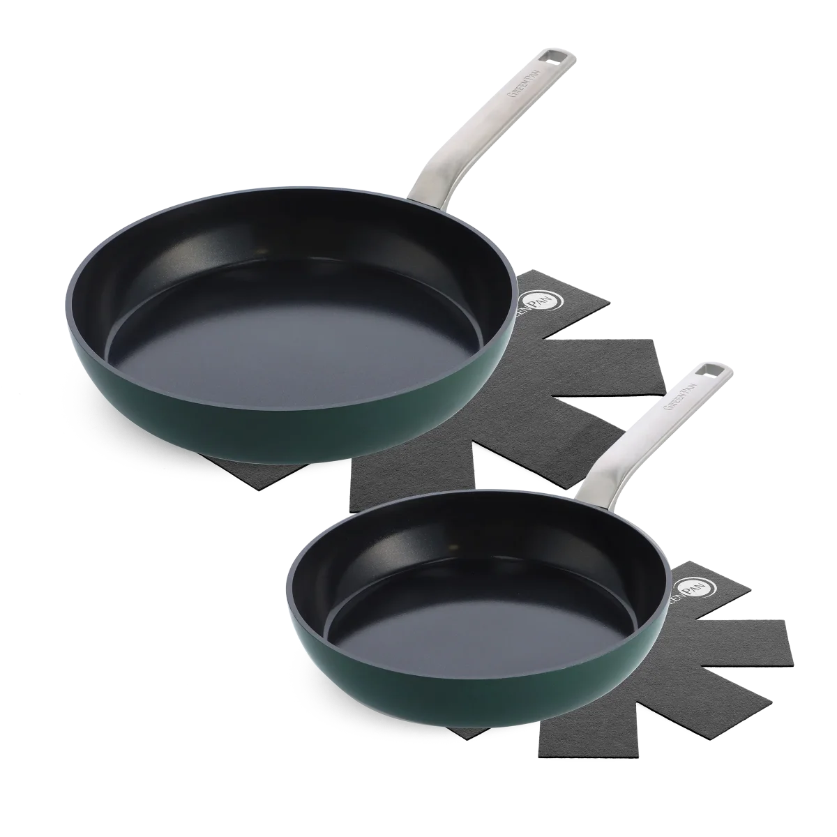 Deze collectie in trendy donkergroen, heeft een slim design met een hart voor de planeet. De items bevatten gerecycleerd aluminium en hebben een afneembaar roestvrijstalen handvat. Daardoor kunnen ze makkelijk gerecycleerd worden. Er is ook minder CO2-uitstoot bij het transporteren van deze producten dankzij een kleinere verpakking. Goed voor de planeet en bovendien ziet deze collectie er fantastisch uit! Bij levering is de handgreep nog niet bevestigd op de pan. Dat doe je eenvoudig zelf aan de hand van ons handig stappenplan dat je in de verpakking kan terugvinden.