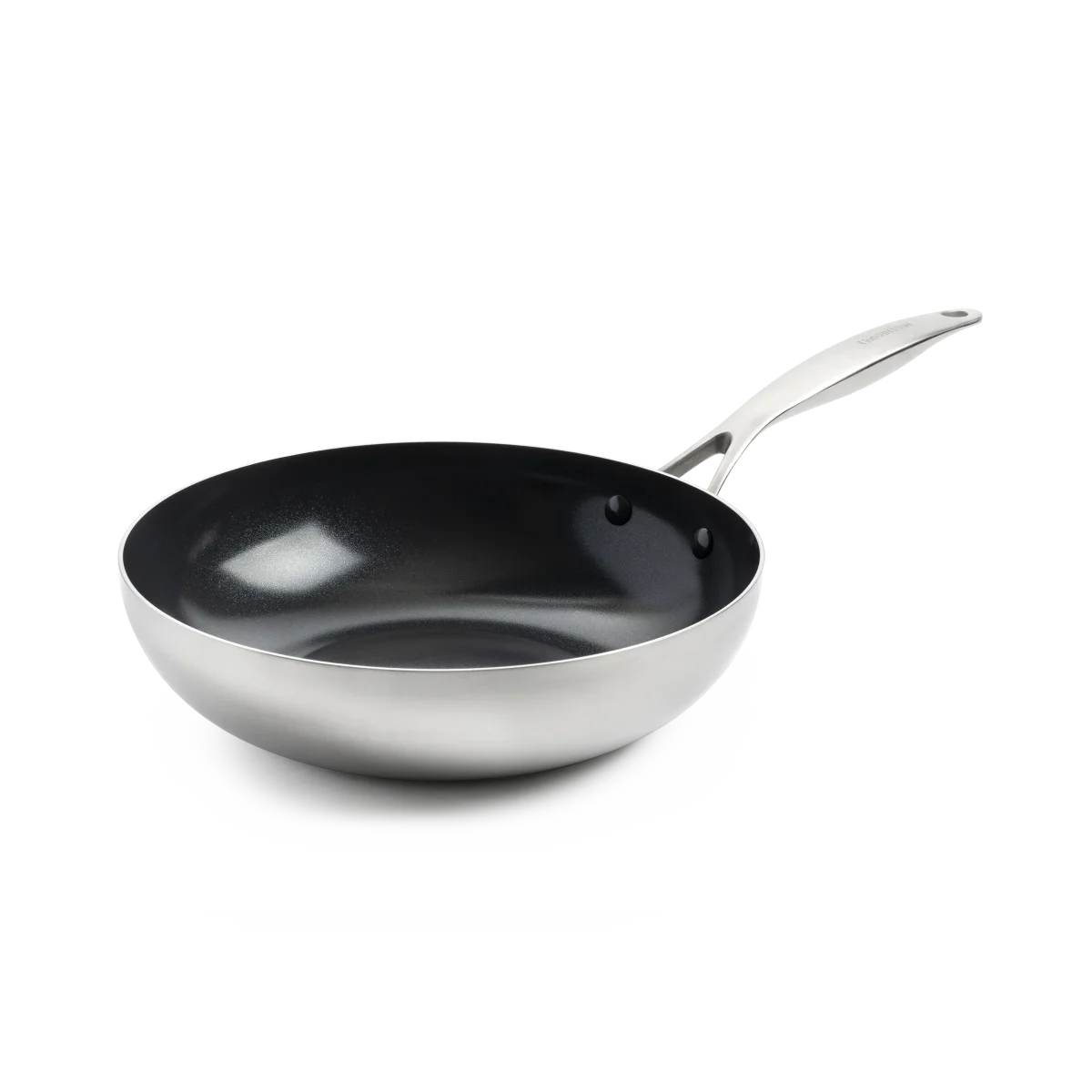 Ontdek de kunst van het koken met onze Geneva collectie. Deze reeks is ontworpen voor chefs die creatief willen zijn in de keuken en hun gerechten naar het hoogste niveau willen tillen! Het 3-laagse design in geborsteld roestvrij staal is een mooie aanwinst voor elke keuken. Geneva is ontzettend duurzaam, zodat je er jarenlang plezier van hebt. Ze garandeert uitstekende resultaten op elk fornuis, ook inductie. Deze slimme reeks combineert hoogwaardige materialen, een ultra-efficiënt design en een strakke look. Dit is de ultieme collectie om thuis te genieten van een professionele kookervaring, wat er ook op het menu staat!