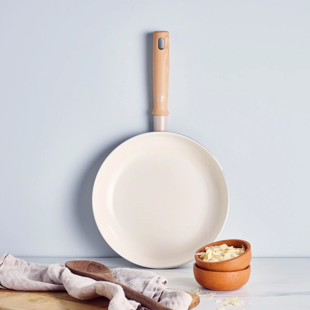 Mooi in zijn eenvoud, functioneel in de keuken! Zo kun je de GreenChef Nordics collectie best omschrijven. Deze pan heeft een body in kwalitatief aluminium, waardoor ze gelijkmatig opwarmt. De natuurlijke kleur van de pan past mooi bij de stay-cool handgreep met houteffect.