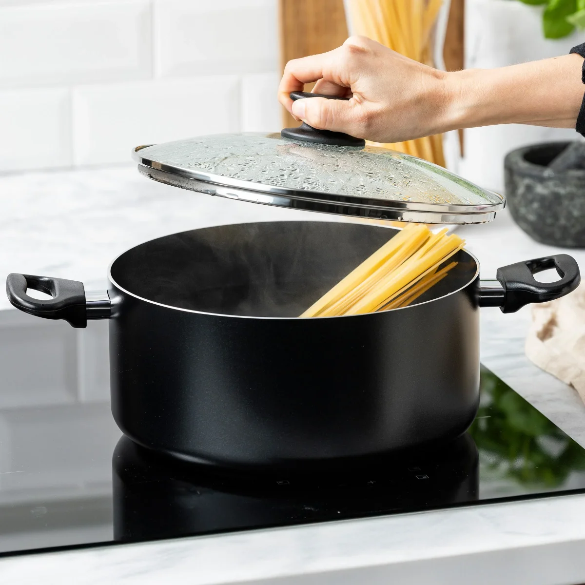 De pannen uit deze reeks werken uitstekend op elk fornuis, ook inductie. Ze hebben ergonomische stay-cool handgrepen, voor een veilige en stevige grip. Schoonmaken is een fluitje van een cent dankzij de naadloze binnenkant.
