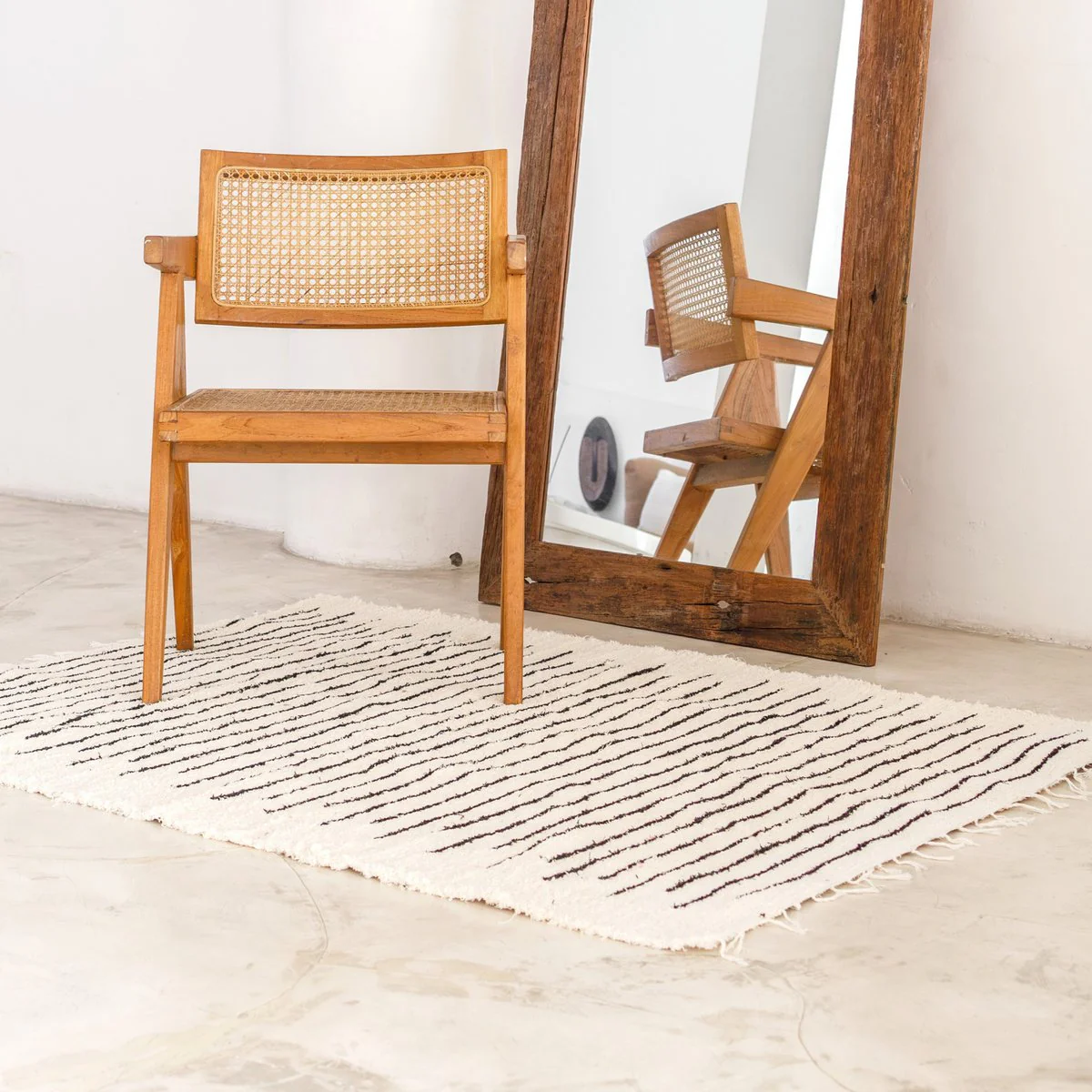 Ons Kerta-tapijt is met de hand geweven op traditionele weefgetouwen van gerecyclede, fijne katoenvezels. Door het vakkundige handwerk ontstaat een modern patroon dat wordt gekenmerkt door zwarte strepen van verschillende lengtes. Samen met de korte franjes aan beide uiteinden geven ze Kerta een speelse lichtheid en combineren ze traditioneel vakmanschap vakkundig met hedendaags design.