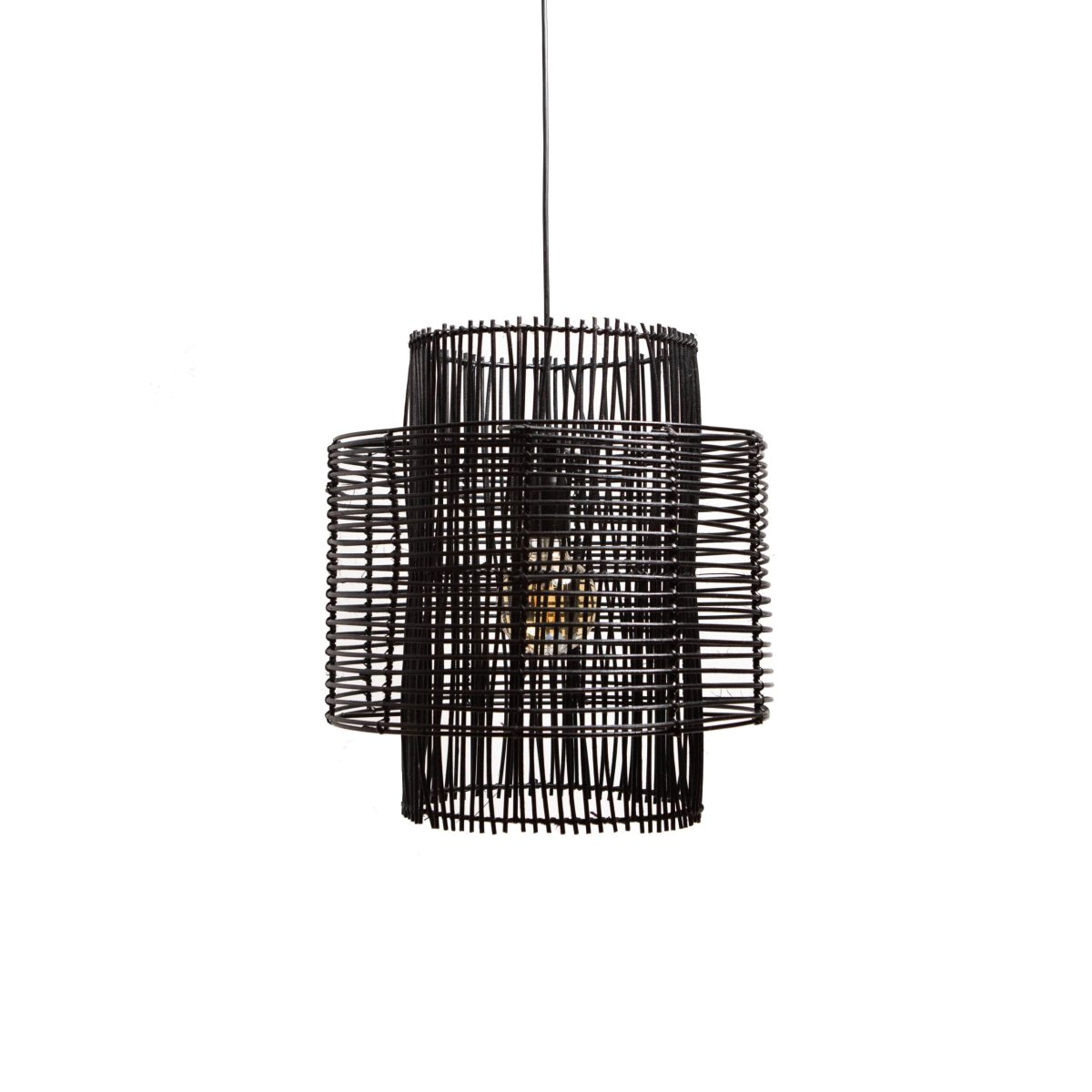 De strakke, matte afwerking van de lamp creëert een ingetogen uitstraling die moeiteloos past in diverse interieurstijlen, van eigentijds tot Scandinavisch en alles daartussenin. Het subtiele vlechtwerk van het rotan zorgt voor een intrigerend spel van licht en schaduw, waardoor een rustgevende ambiance ontstaat.