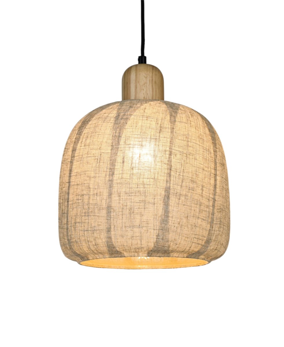 Artikelnummer: 121261 Afmeting kap: Ø26×25 cm Maximale lengte kabel: 120 cm Materiaal: Premium stof + glas Kleur: Parelgrijs Exclusief lichtbron (E27)
