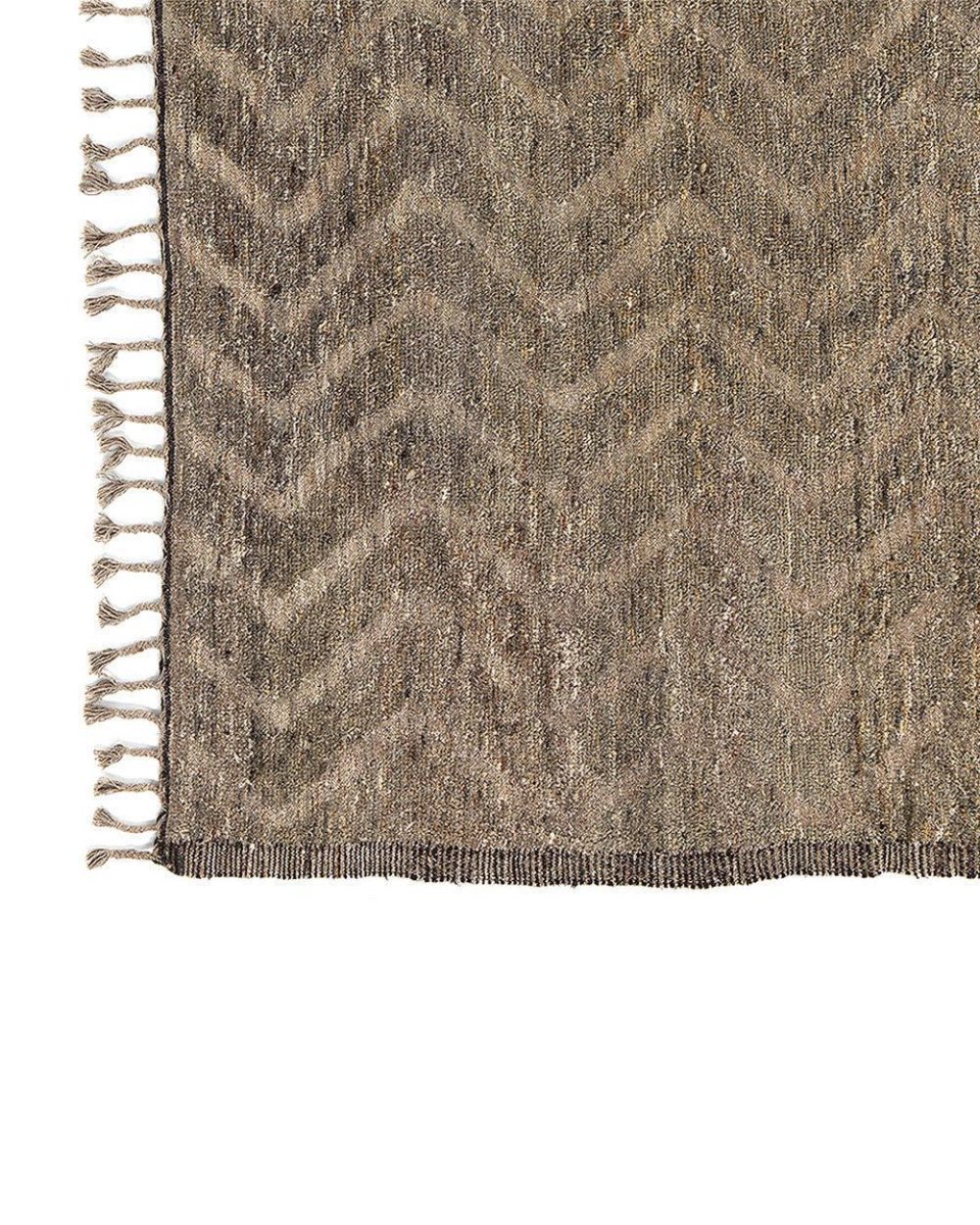 Het Handgeweven Afghaanse Tapijt #0651 wordt gekenmerkt door ritme en beheersing, een met de hand gemaakt wollen chevron-tapijt dat traditie vertaalt naar stille elegantie. Het zachte zigzagpatroon, uitgevoerd in natuurlijke tinten, voelt zowel tijdloos als modern aan, een visuele textuur die verbetert zonder te overheersen.