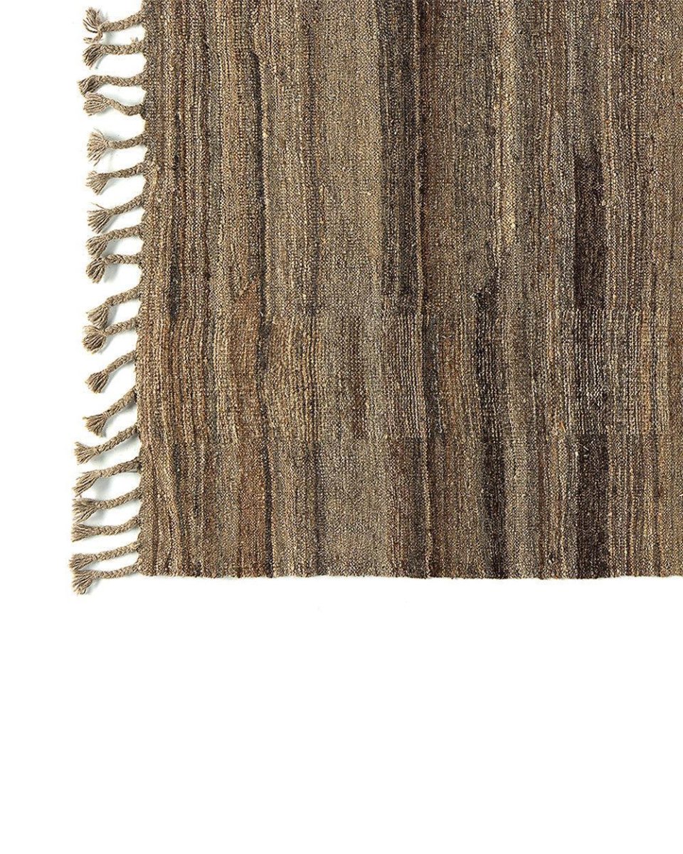 Geweven van natuurlijke wol combineert het dagelijkse duurzaamheid met zachtheid onder de voeten. Het gedempte bruine palet, vaak verrijkt met traditionele verfmethoden, geeft stille elegantie terwijl het zich gemakkelijk aanpast aan rustieke, moderne of eclectische interieurs.