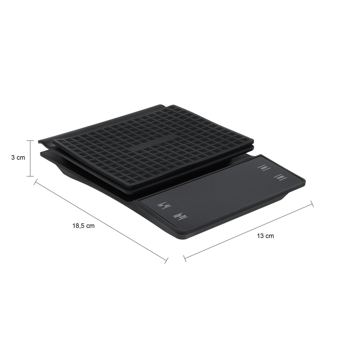 De Krumble barista keukenweegschaal weegt nauwkeurig tot wel 3000 gram. Daarbij heeft de keukenweegschaal ook een ingebouwde timer, zodat je de precieze extractietijd bijhoudt voor een smaakvol kopje koffie. Het antislip oppervlakte aan de bovenkant van het weegschaaltje kan goed tegen vloeistoffen en zorgt ervoor dat je kopje stevig blijft staan. Zo heb je alles in huis voor een perfect kopje koffie.