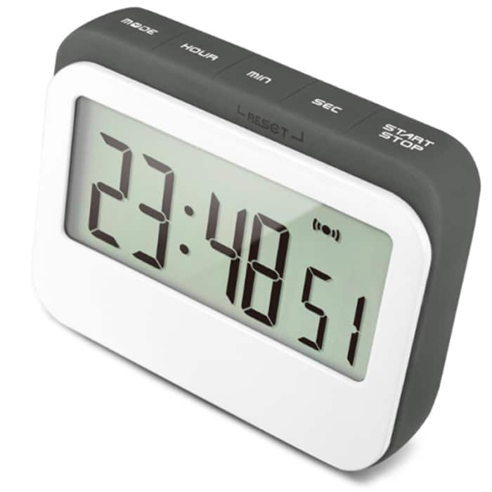 Alarm instellen van de grijze Krumble digitale kookwekker