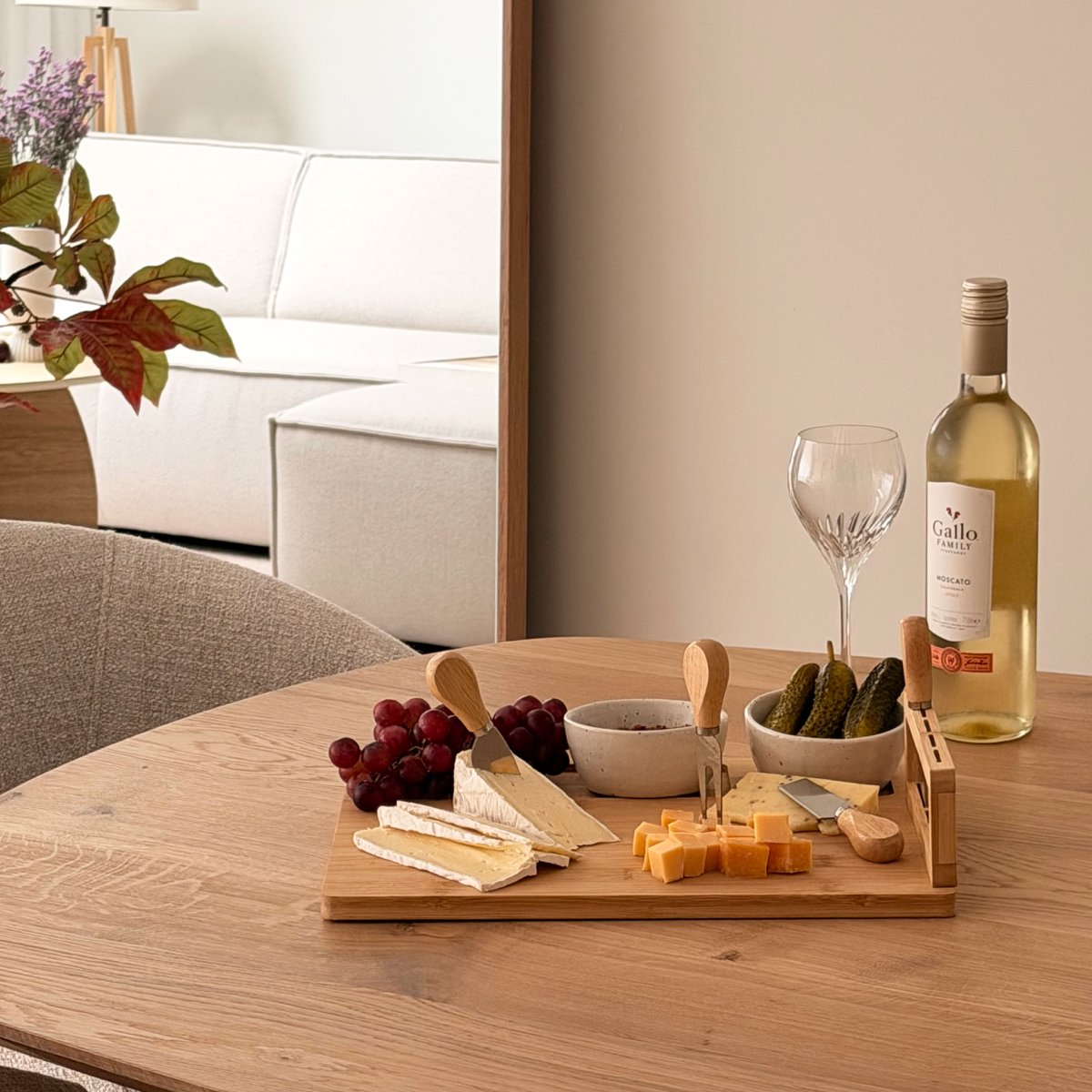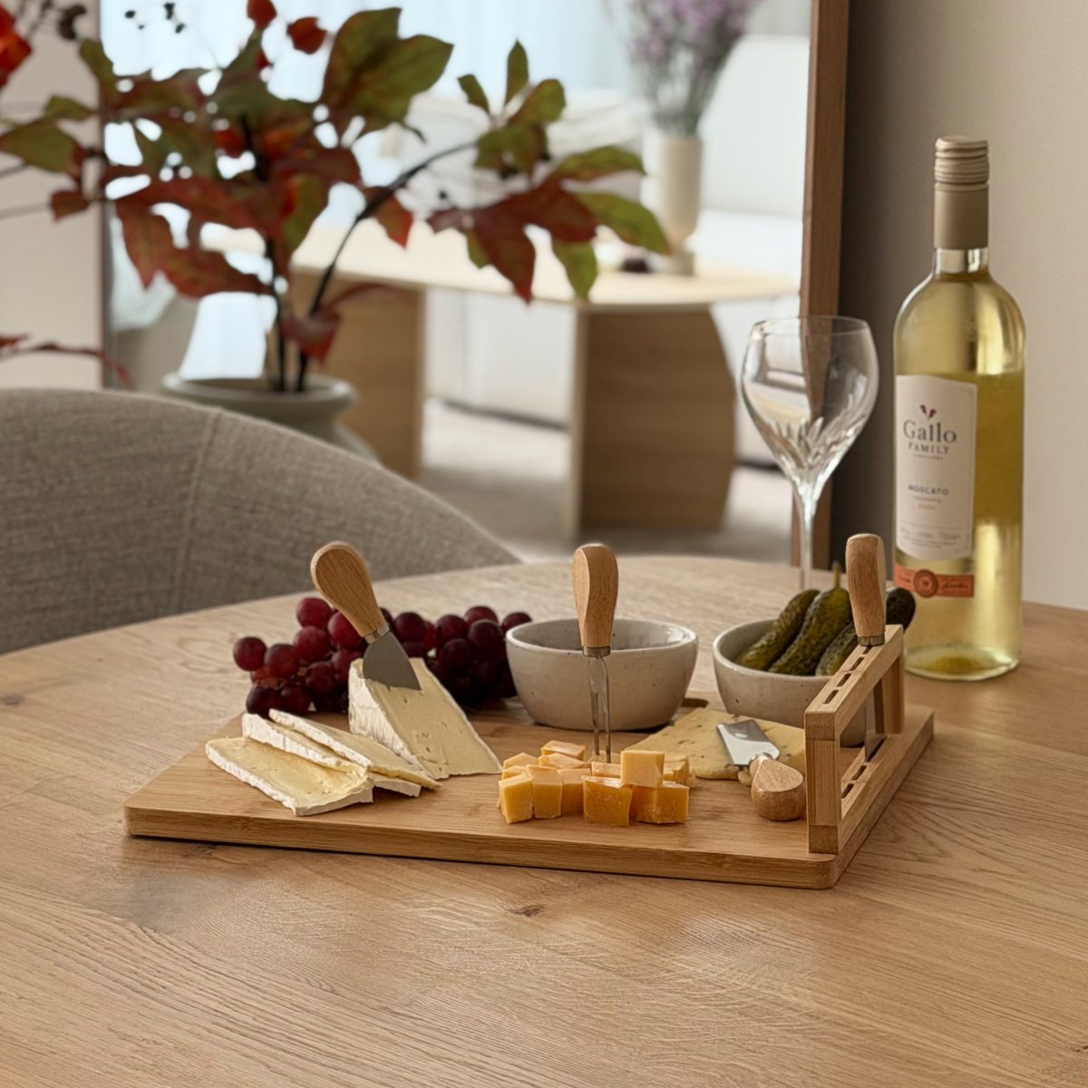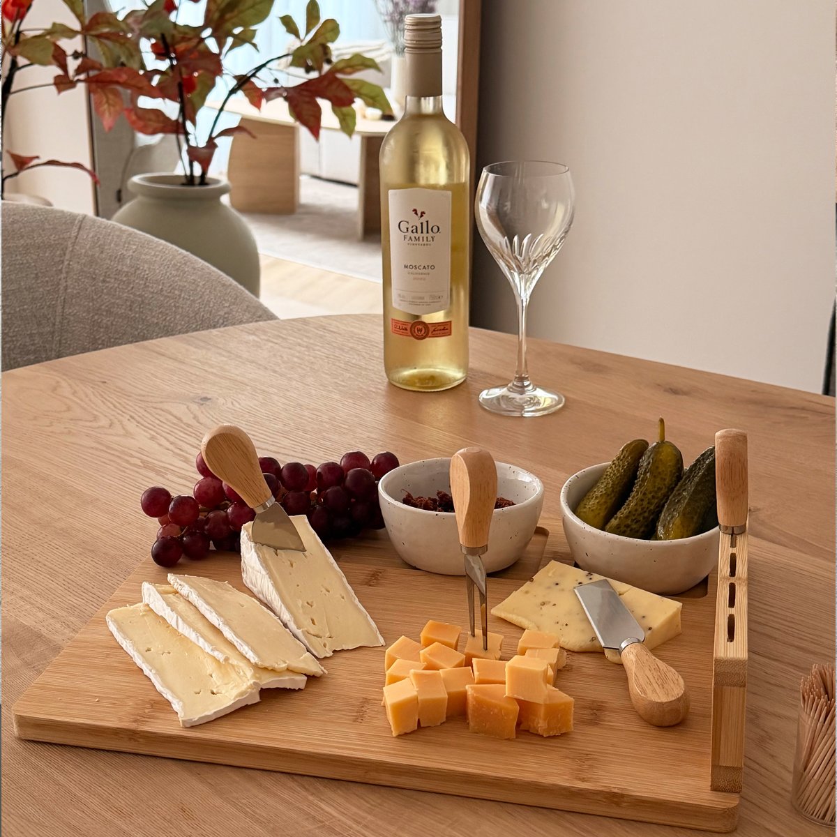 Kaas stijlvol serveren met deze kaasplank inclusief messenset