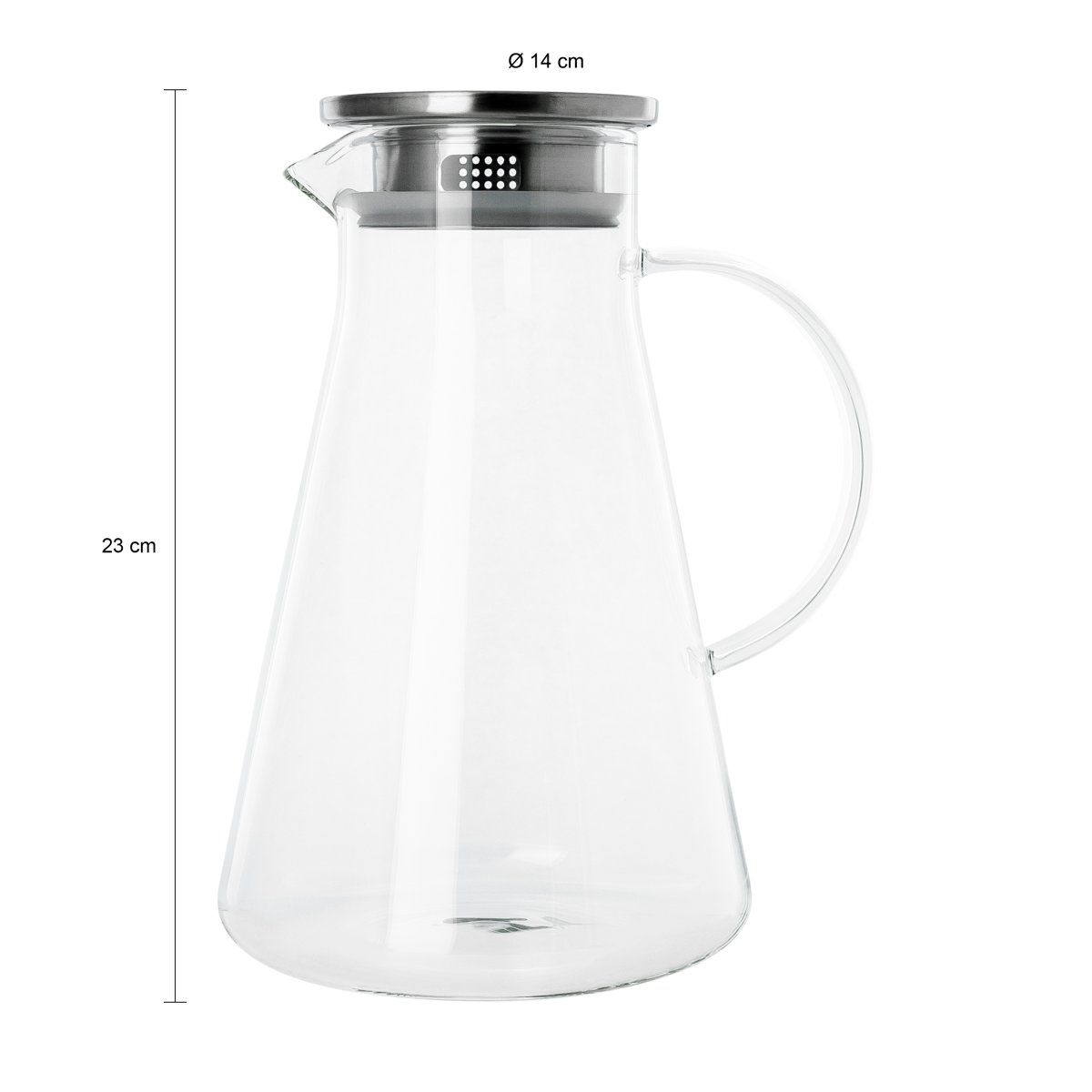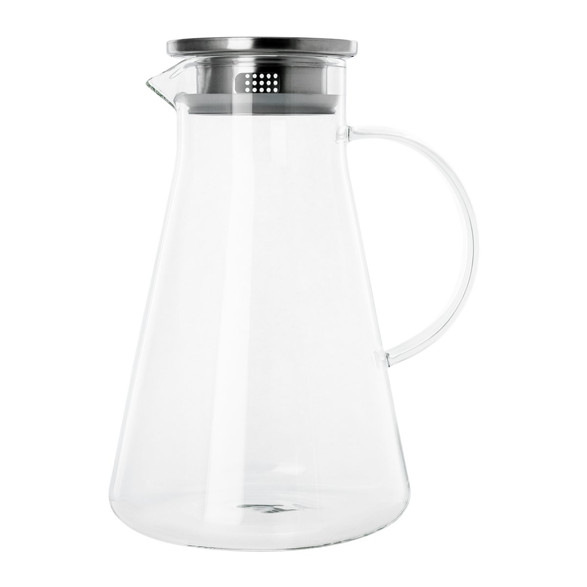 De glazen karaf met filter en handvat heeft een eenvoudig ontwerp wat goed bij een Scandinavische woonstijl past. De karaf met aluminium deksel heeft een mooi contrast dankzij de glas-aluminium combinatie. Beide materialen kunnen goed tegen hitte en kou, waardoor je diverse dranken kunt schenken met deze glazen karaf van 1.8 liter.