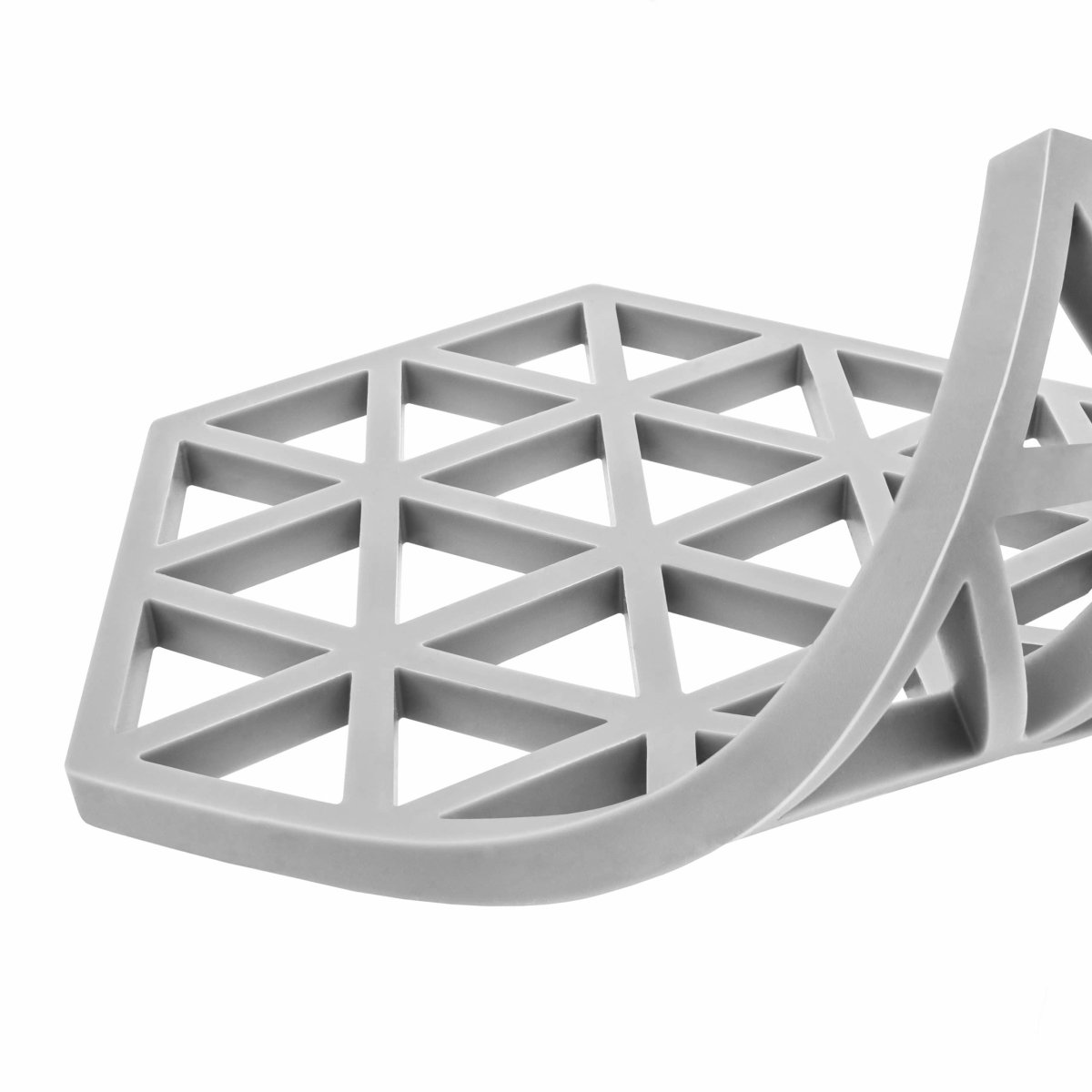 Deze brede pannenonderzetter in het grijs is hittebestendig en eenvoudig schoon te maken