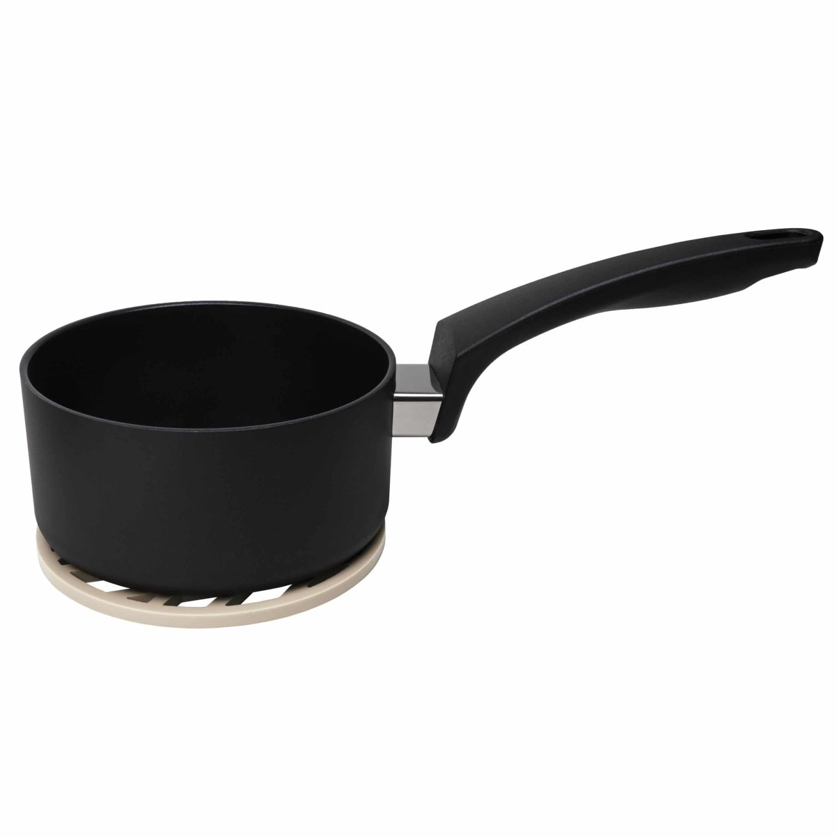De beige pannenonderzetter is gemaakt van siliconen. Een siliconen pannenonderzetter is erg flexibel en makkelijk te verplaatsen. Ook gaan siliconen pannenonderzetters lang mee, omdat het materiaal ervoor zorgt dat ze niet makkelijk kunnen breken.