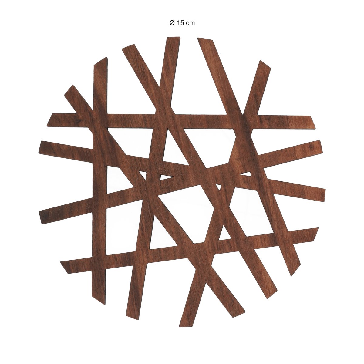 Wil jij je tafel beschermen tegen hete pannen en schalen en tegelijkertijd je gedekte tafel wat extra sfeer geven? Dan is deze Krumble pannenonderzetter in het rond van hout een echte aanwinst. De pannenonderzetter heeft een opvallende uitstraling. Tegelijkertijd beschermt de hittebestendige pannenonderzetter je tafel tegen hete pannen. Daarom is dit pan accessoire ook in de keuken erg nuttig. Het donkere hout van de onderzetter ziet er luxe uit. De natuurlijke uitstraling past goed in diverse woonstijlen. Zo is deze pannenonderzetter een aanwinst voor elke gedekte tafel.