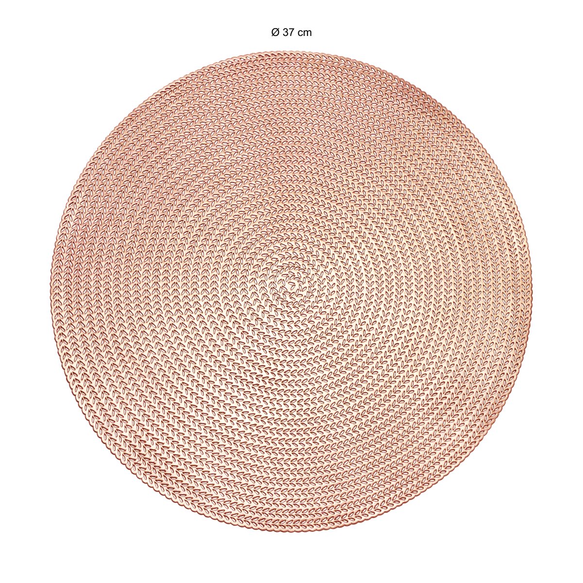 De placemat heeft een elegante uitstraling. De placemat van pvc bestaat uit meerdere steeds groter wordende cirkels die samen een ronde placemat vormen. De placemat zelf heeft een interessante textuur, wat bijdraagt aan de elegante en bijzondere uitstraling van de roségouden placemat van PVC.
