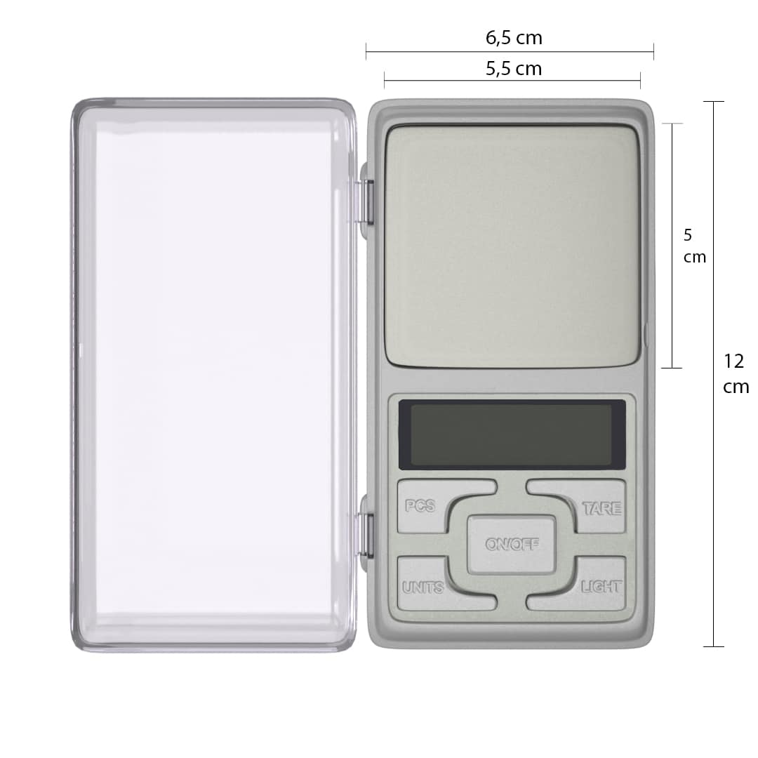 - Afmeting weegplatform: 5 x 5,5 cm (lxb)
