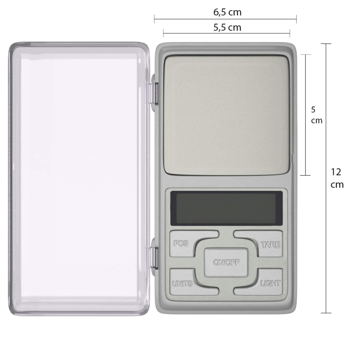 - Afmeting weegplatform: 5 x 5.5 cm (lxb)