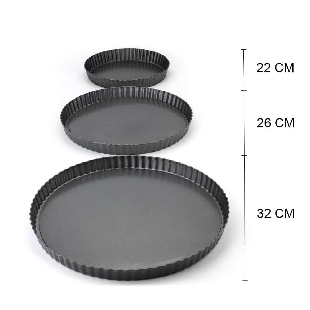 Als je kiest voor deze quichevorm, krijg je onmiddellijk drie afmetingen. Hierdoor hoef je nooit te zoeken naar de geschikte grootte van je vorm. Of je nu voor enkele of voor veel personen een taart wilt bakken, je hebt meteen de juiste afmeting van bakvorm in huis. Waarom zou je ook maar één vorm aankopen als in deze set maar liefst 3 maten S / M en L zitten?
